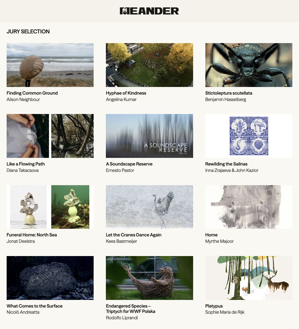 Are you curious to explore rewilding and the selected artworks yourself? The Exhibition Gallery, featuring 12 compelling responses to our Open Call, just launched on Meander magazine with diverse artworks for you to see, sense, and engage with.